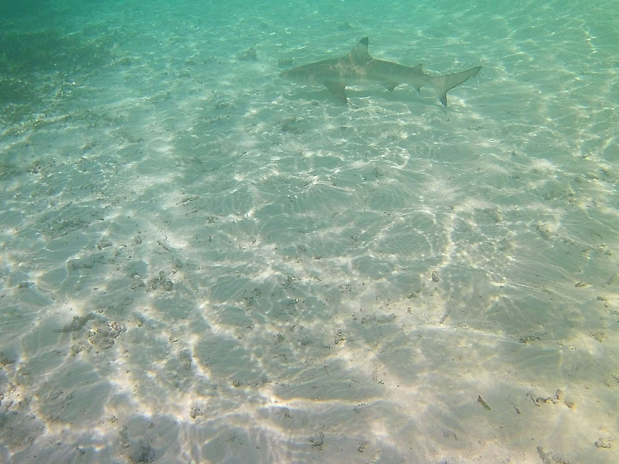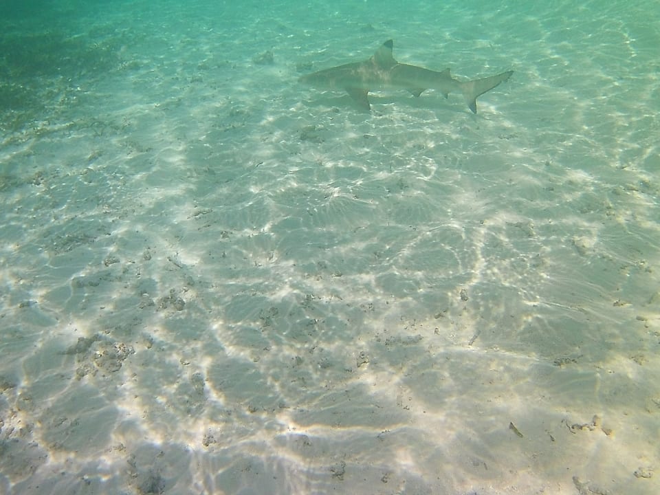 Schwarzspitzenriffhaie schwimmen bis an den Strand (sind aber kleine)
