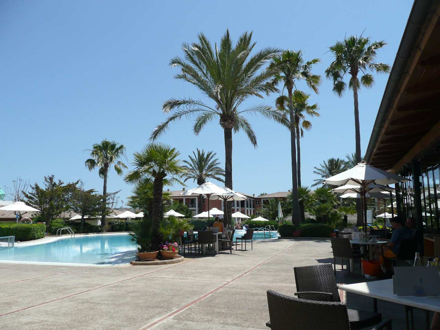 Blick von der Bar zu einem Teil der Poolanlage