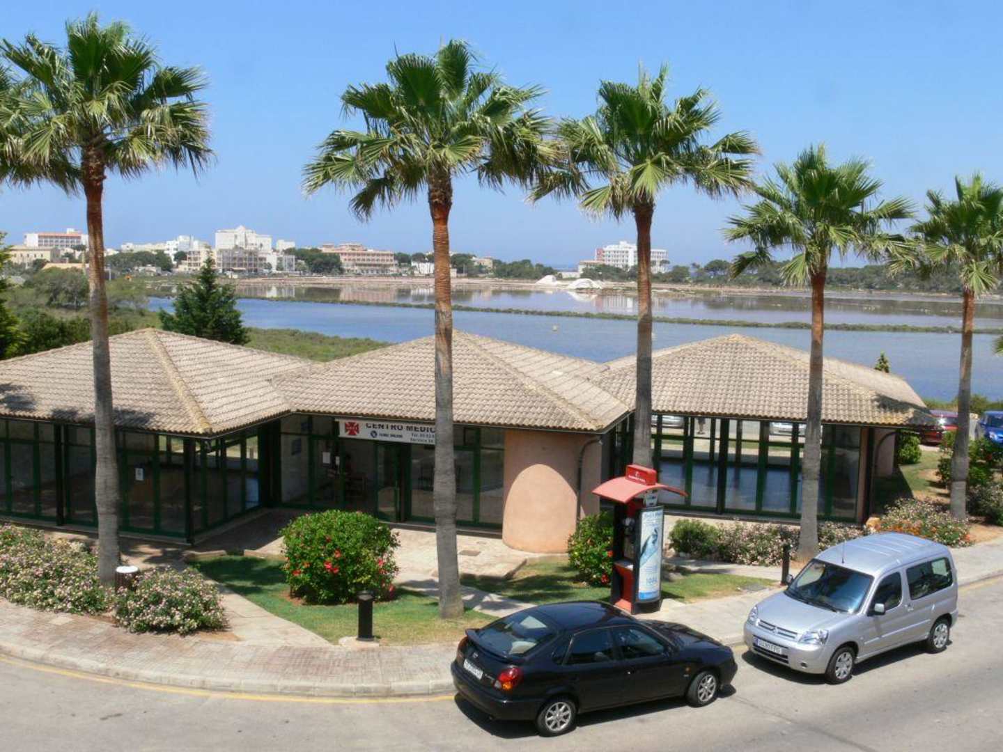 Hinter dem Hotel (hinter mittlerer Palme) beginnt der Strand Es Trenc.