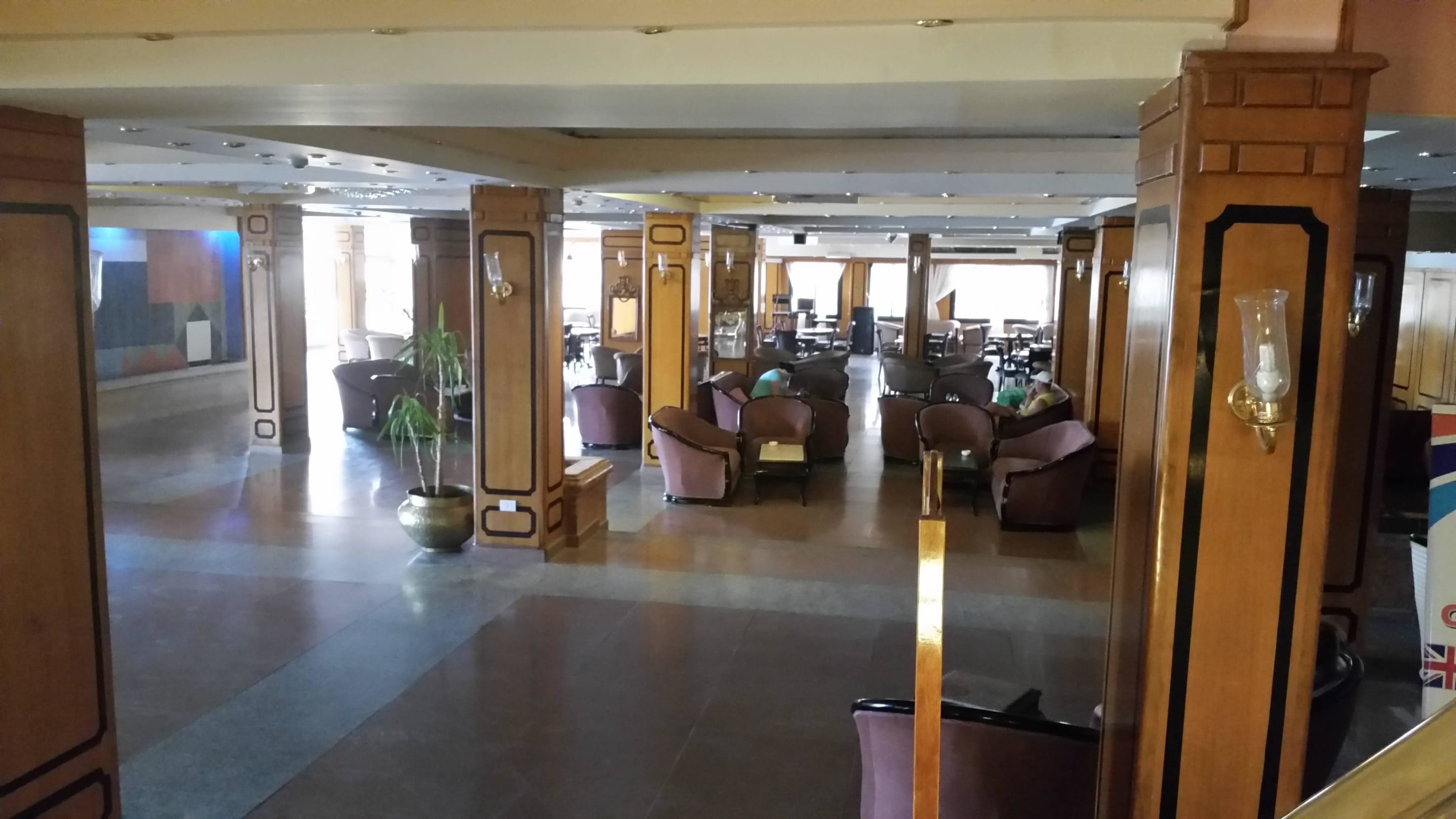 Lobby des HotelsBlick in die großzügig angelegte Lobby. Viele Sitzmöglichkeiten, kleine Bar und Fernseher.