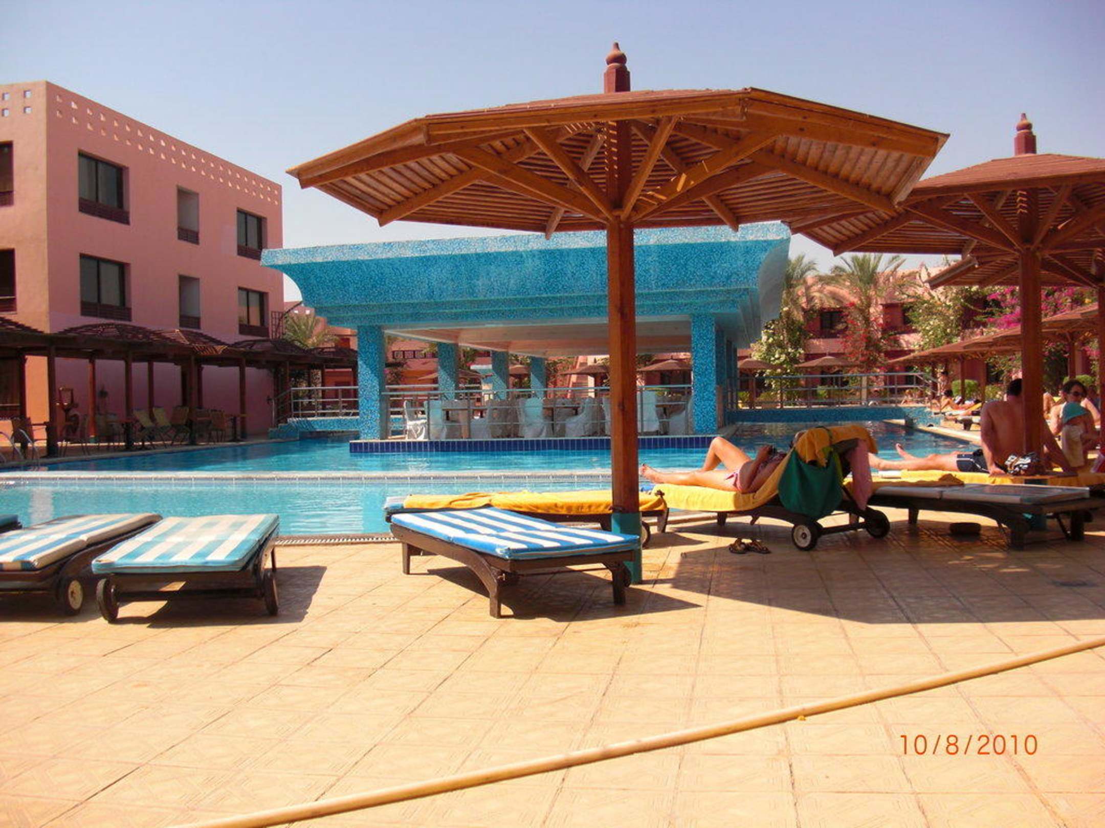 Pool mit Mittelinsel zum Essen abends