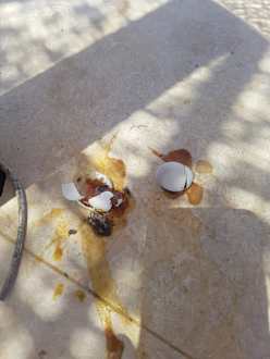 PoolAuf einem Tisch am Pool. Totes Küken. Lag stundenlang da