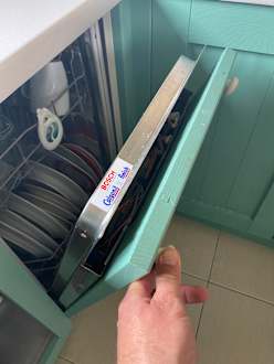 Bedienpanel der Spülmaschine fehlt, die Kabel liegen frei.