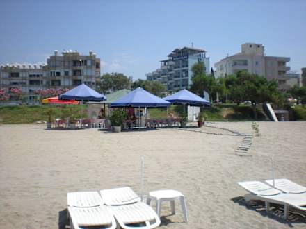 Die Strandbar und im Hintergrund das Hotel.