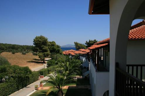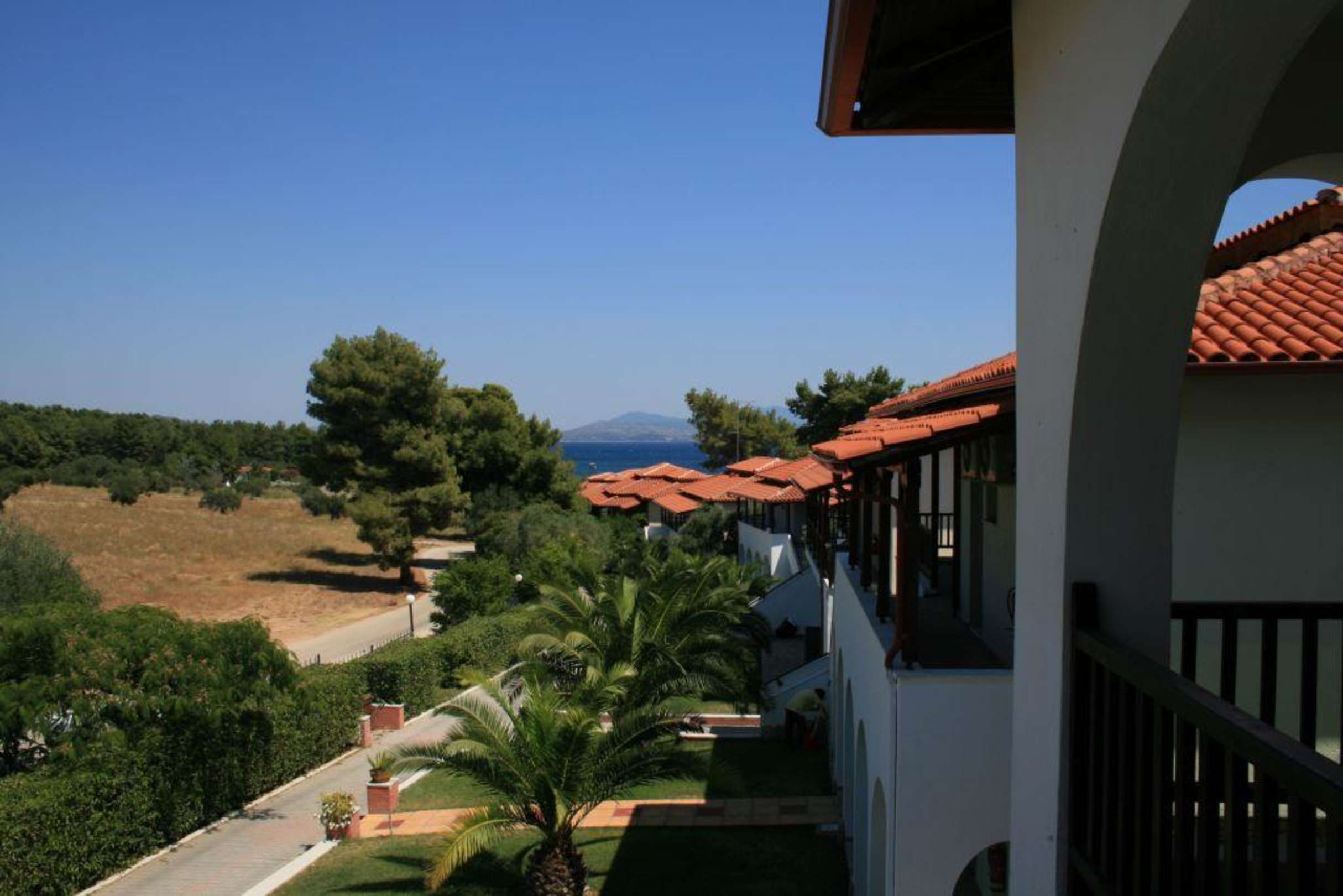 Haus Reihe Hotel Blue DolphinHäuserreihe an der oberen Straße. Aufnahme von Haus 1.Eingang Hotel Blue Dolphin vom Parkplatz in direkter Nähe.