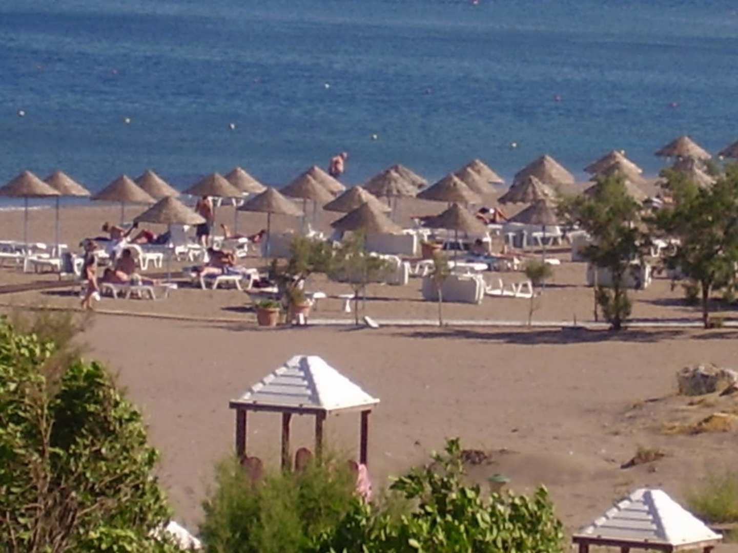 Strand mit Sonnenschirmen