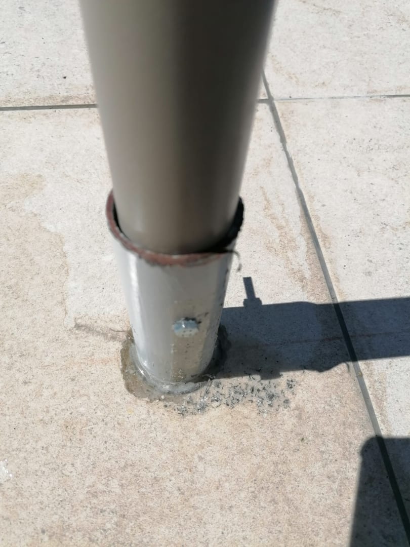 Am hauptPool. Alten Schirm abgeflext und Draht einfah dran gelassen. Unglaublich.