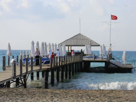 Пирс на пляже-там лежаки и бар