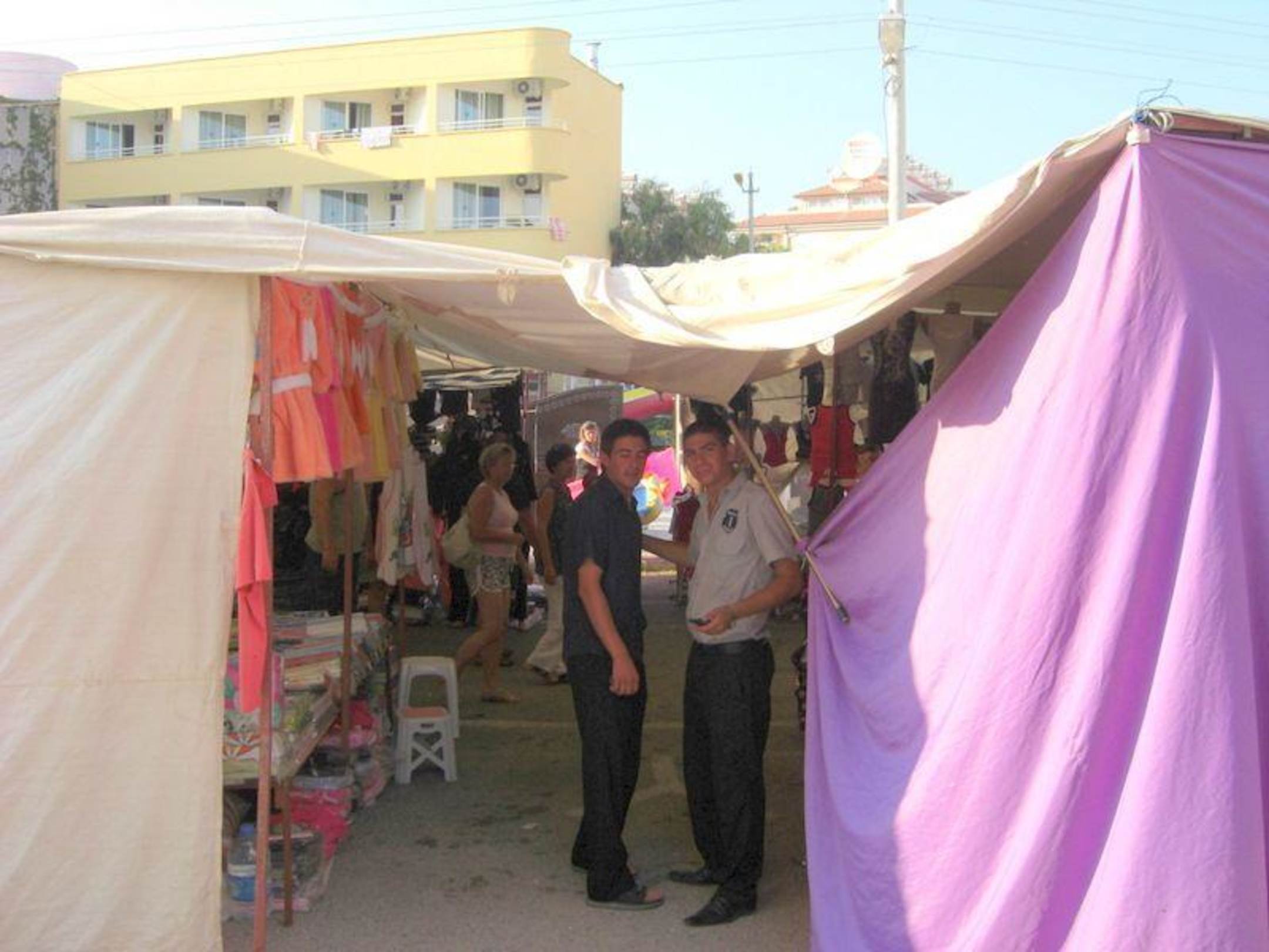 Montags ist in der Straße zwischen der Nebengebäuden und dem Hauptgebäden Bazar, das Bild zeigt den Weg zum Haupthaus durch den Bazar