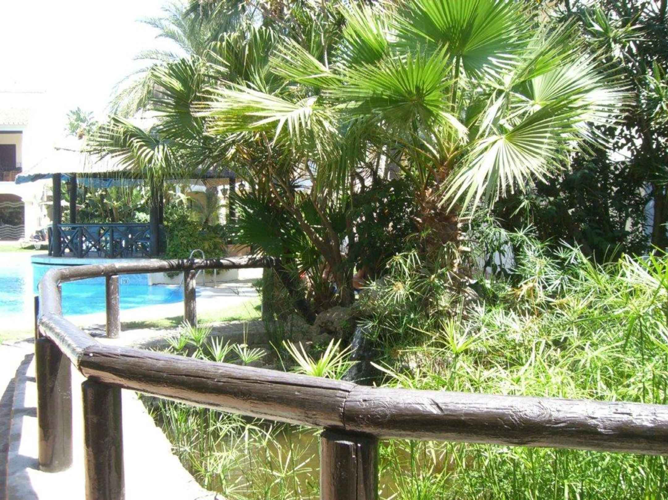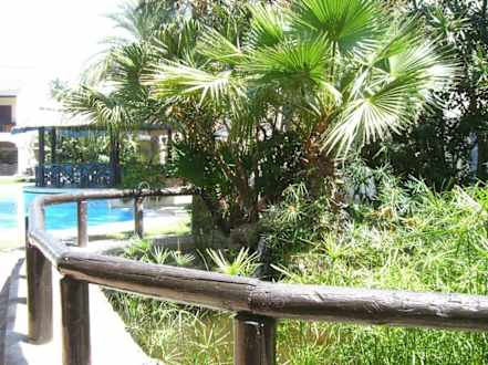 Blick zum kleinen Pool vom Restauranteingang