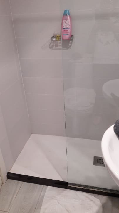ZimmerDusche ist halb offen, leider ständig Wasser im Raum