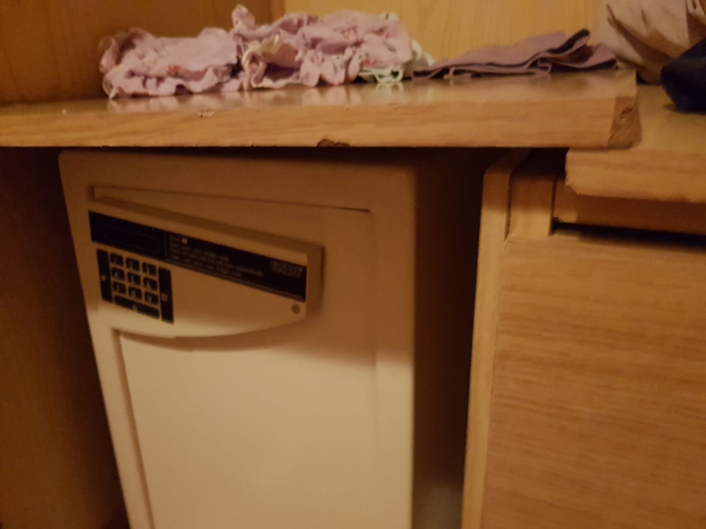 Schlafzimmer Schrank und "Safe" - SafeTerminal lässt sich bewegen , Schrankschubladen nur mit erhöhtem Kraftaufwand , 2 von 3 Schränken nicht nutzbar wegen bestialischem Gestank(der bei geschlossener Tür zum Glück drin blieb)