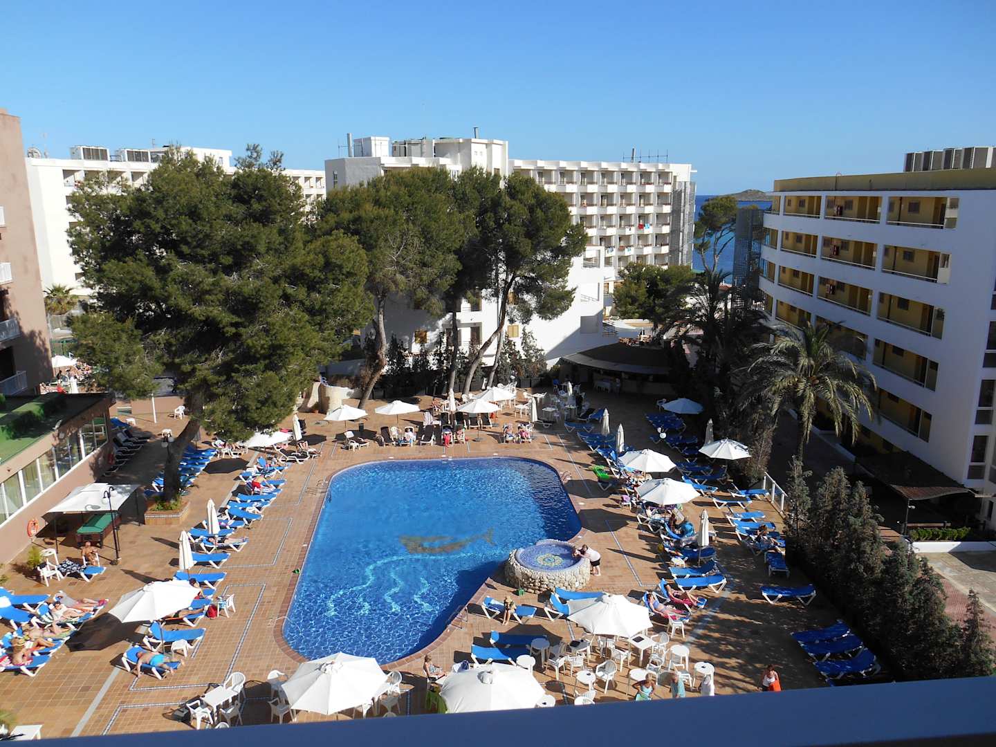 Zimmerausblick auf die Poolanlage