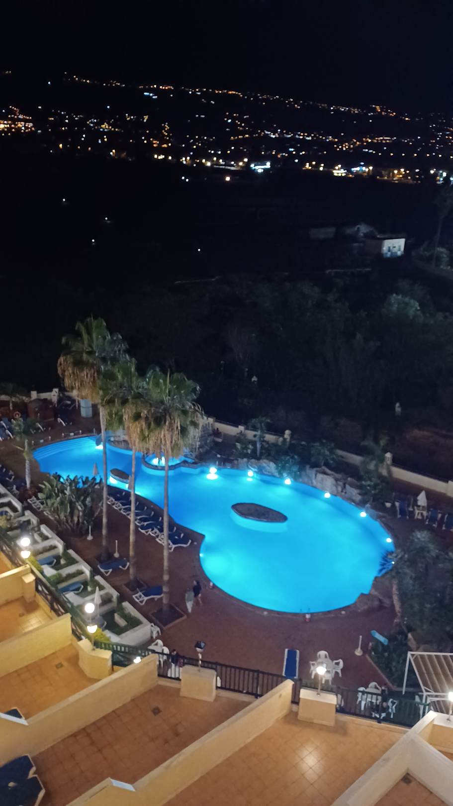 Beleuchteter Pool am Abend
