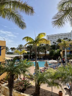 Ausblick vom Zimmer, man sollte Poolblick nehmen.