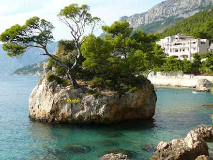 Die ganz kleine Insel an der Makarska Riviera ist das Wahrzeichen von Brela. Immer wieder gerne fotografiert! Die Adria rundherum ist glasklar.