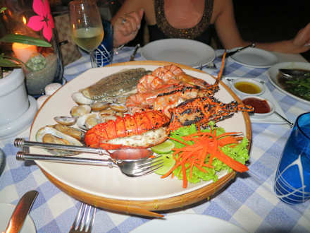 Seafood-Platte im Hotelrestaurant am Strand