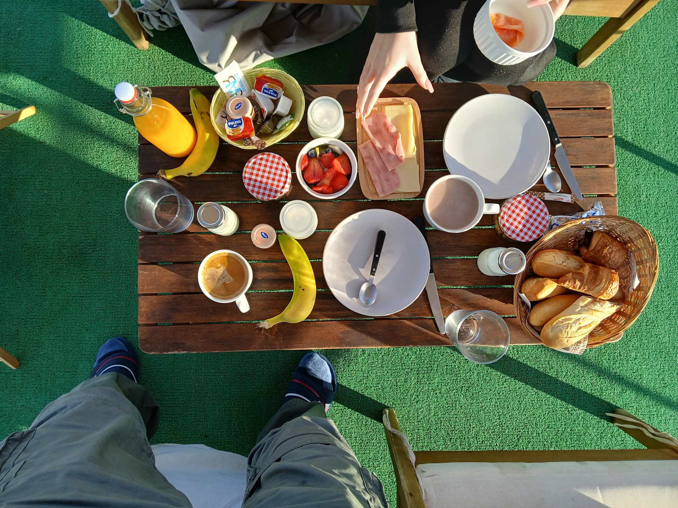 SonstigesFrühstück ans Boot. Wir haben den Frühstückskorb ausgepackt und den Inhalt auf der Dachterasse genossen.
