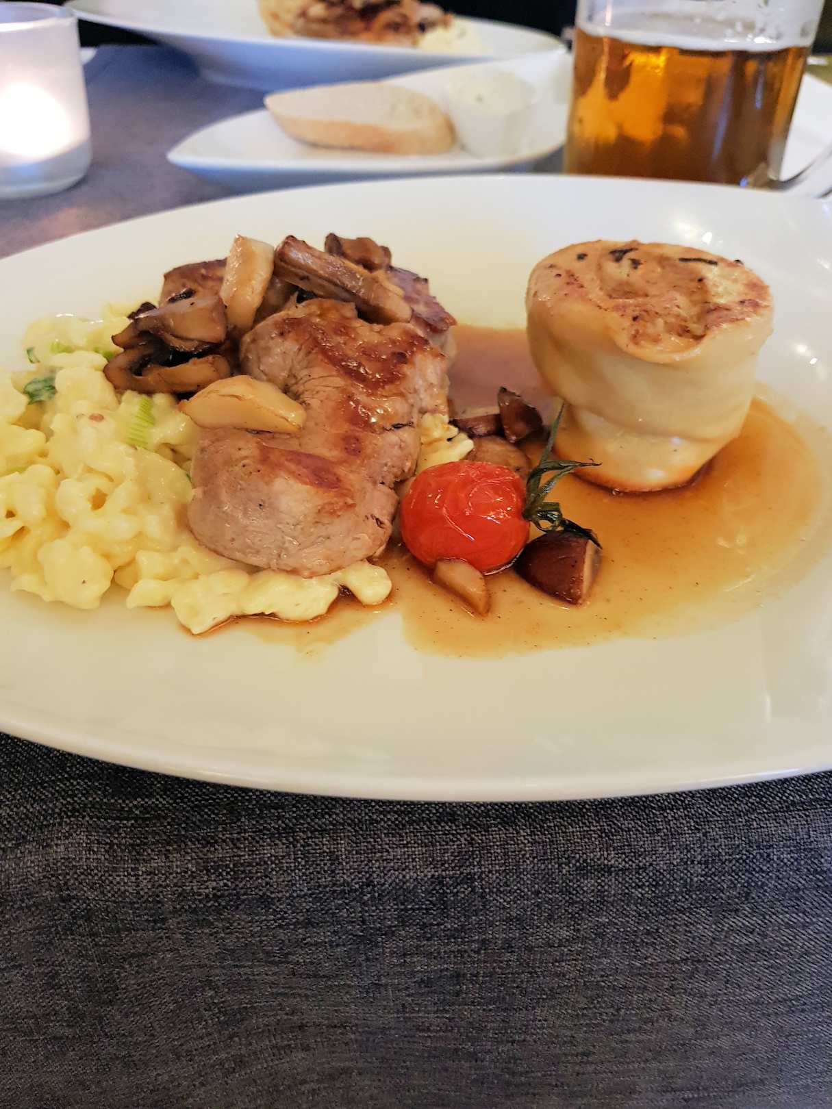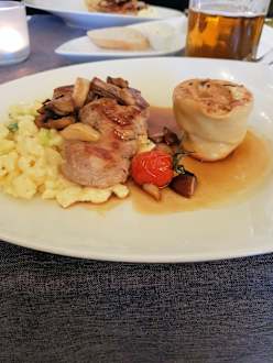 Abendessen, Schweinefilet, Käsespätzle und Maultasche