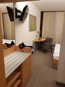ZimmerAblage, TV, Schreibtisch mit vielen Steckdosen, Queensize-Bett --> Zimmerkategorie 2