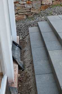 Romantik-Zimmer: Bereich vor Fenster 1Die Schwelle vor der Terrassentüre 1 unfertige Baustelle: Verletzungsrisko, Terrasse unbenutzbar