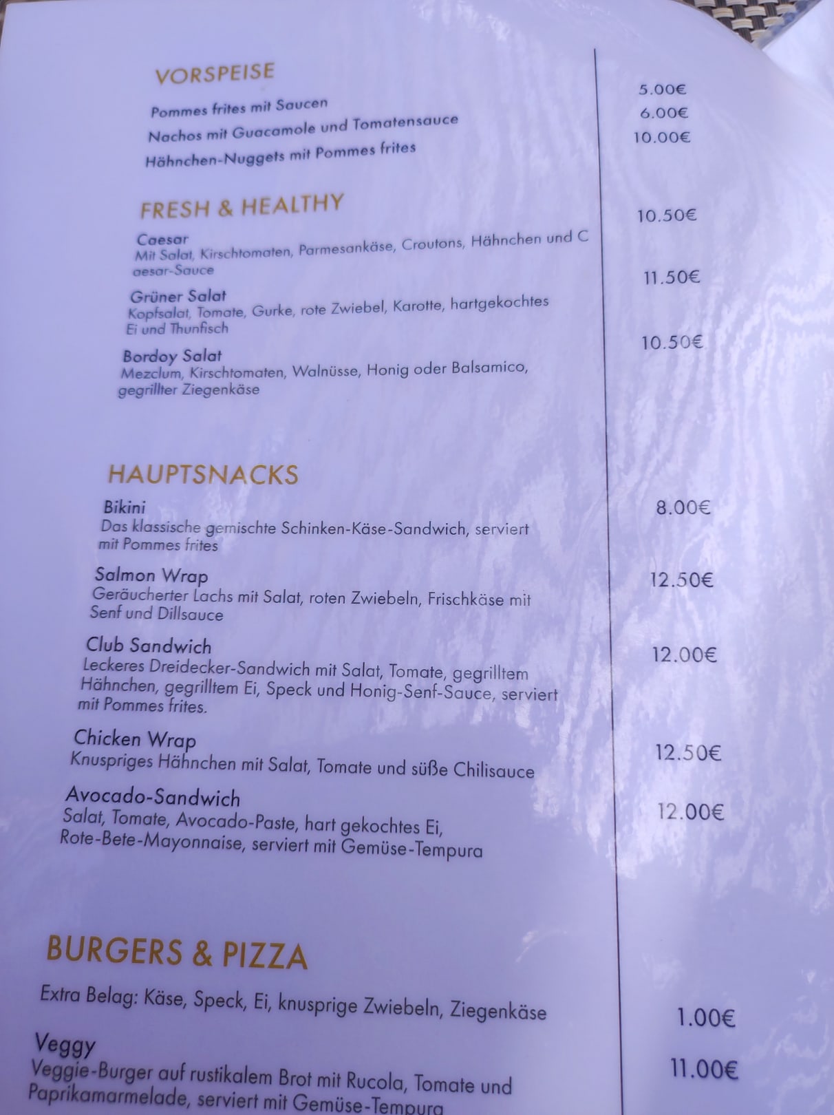 Poolbar Speisekarte