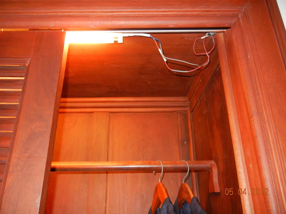 Kleiderschrank mit lose hängenden Kabeln