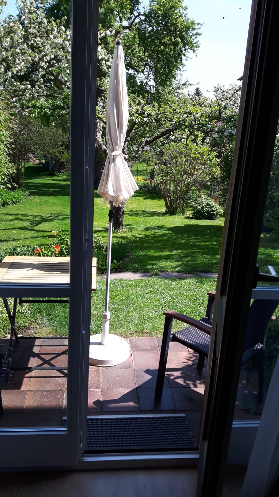 Aussicht aus unserem Zimmer - Zugang zur Terrasse und in den Garten