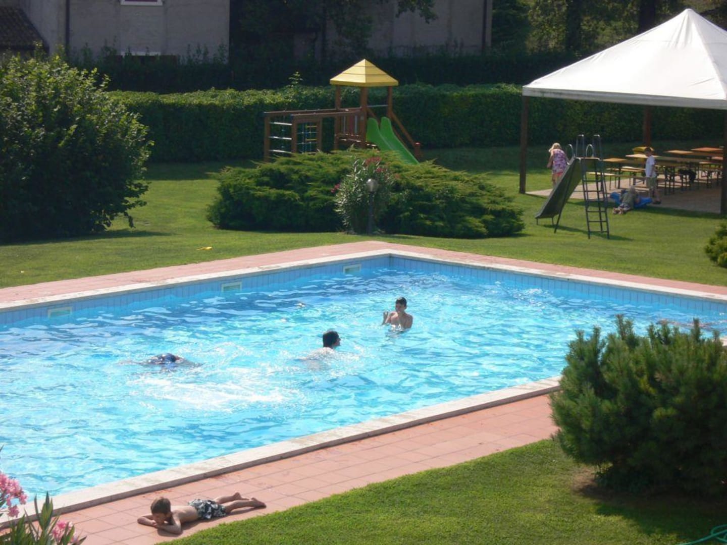 Großer Pool und Spielplatz