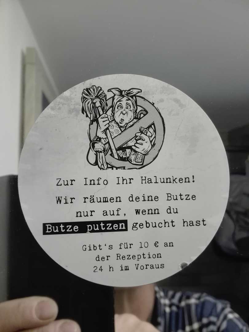 Aufkleber am Badspiegel