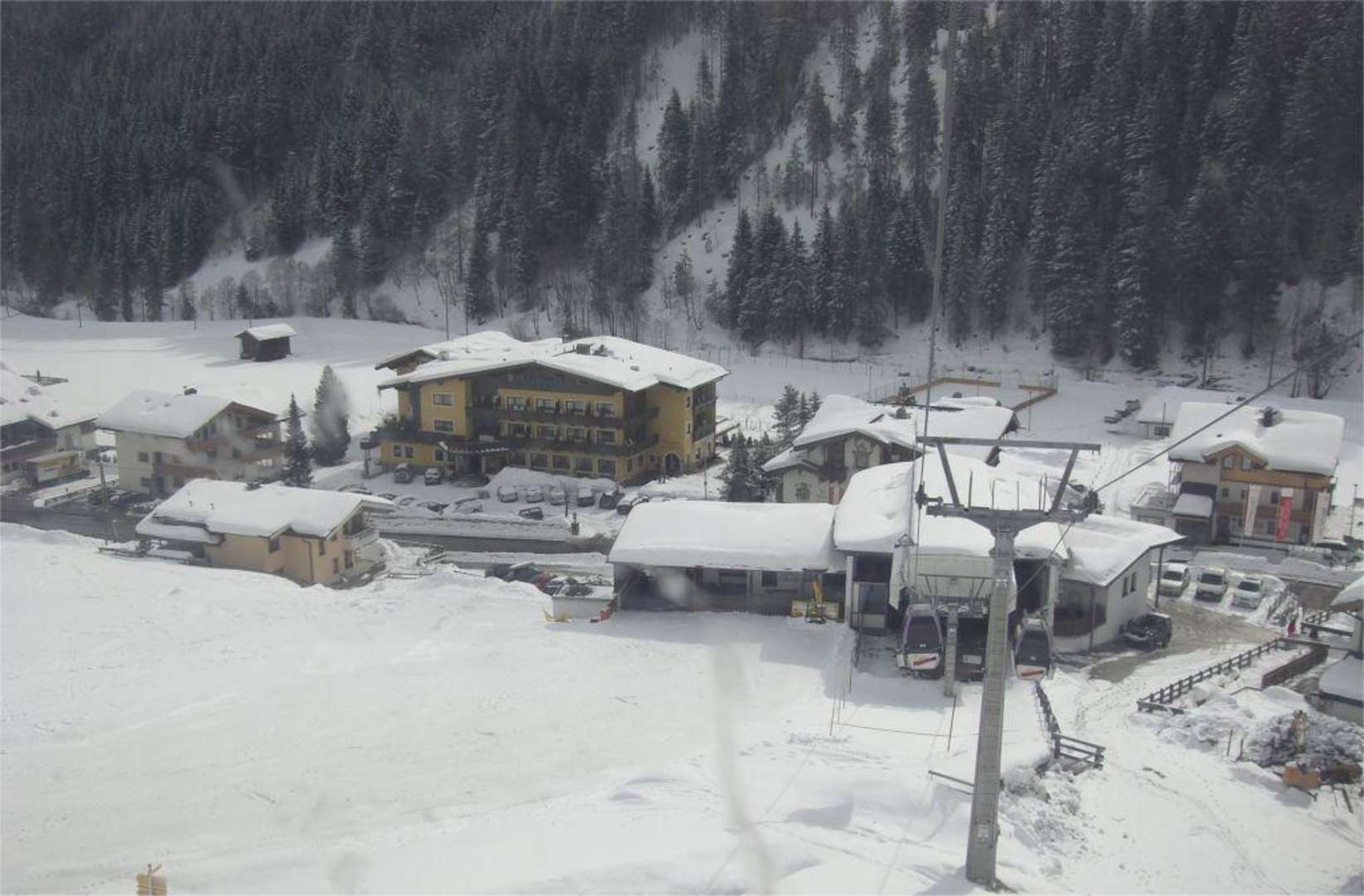 Blick aus der Eggalmbahn auf das Hotel