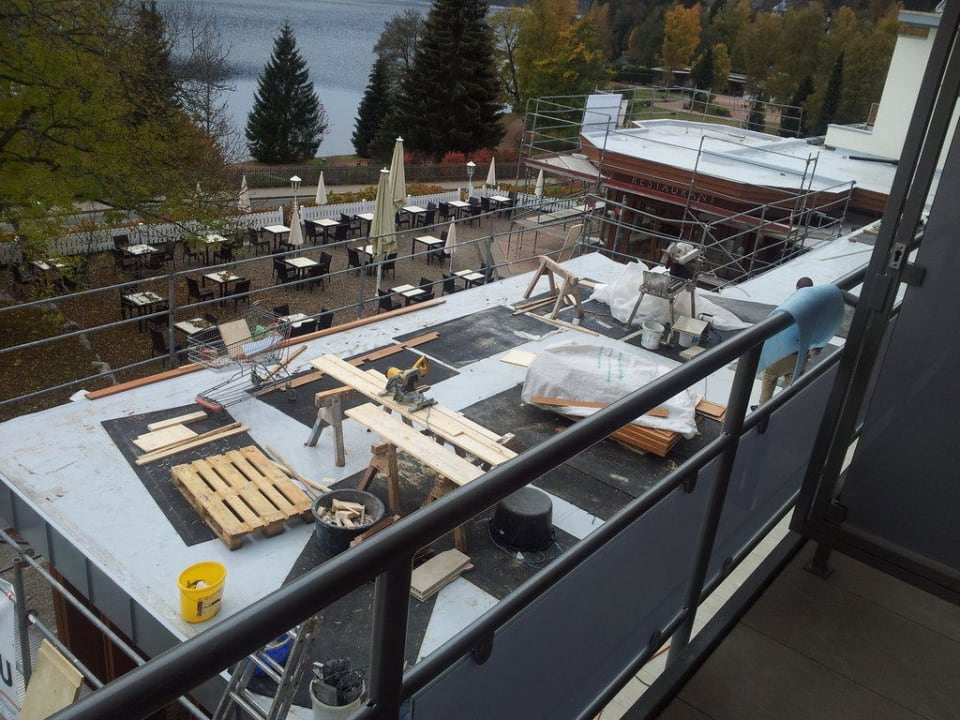 Auf die Baustelle..... die Baustelle stand zwischen uns und dem See ... kein schöner Anblick und vor allem ziemlich laut!