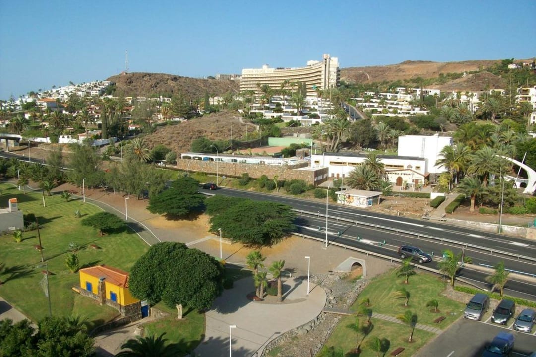 Blick auf die Schnellstraßeseitlicher Meerblick, links zum Meer, rechts zur Schnellstraße und zum Hotel Gloria Palace