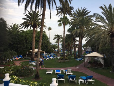 GartenanlageMan kann sich aussuchen ob man eine Liege am Pool oder im Garten möchte. Am Pool liegt man enger hat aber mehr Sonne.