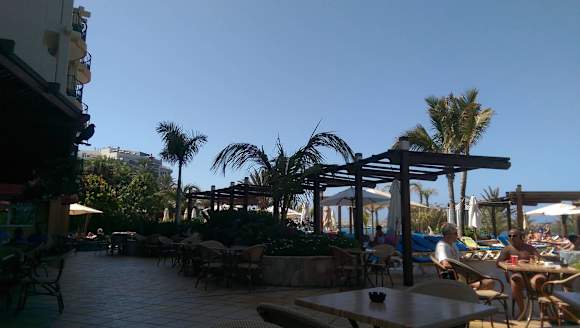 Sitzmöglichkeiten vor der Poolbar