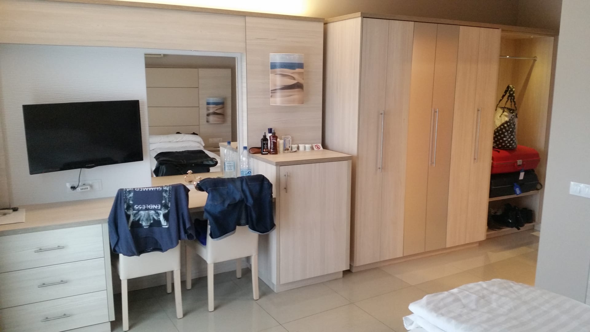 geräumiges Zimmer mit großem Kühlschrank