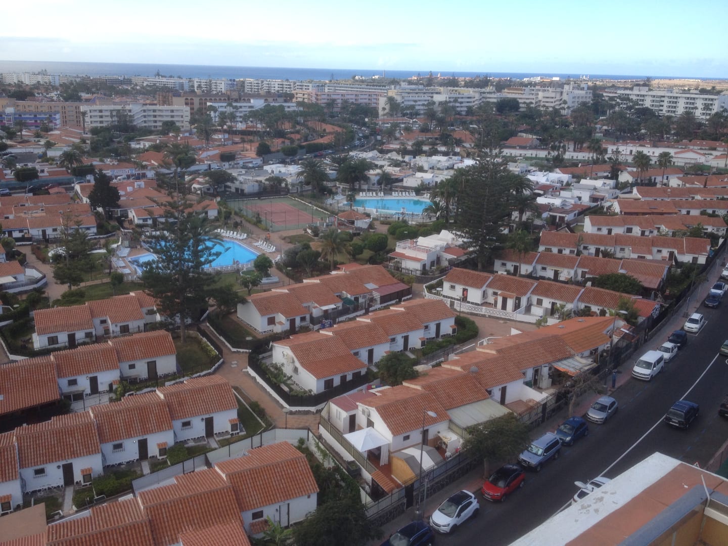 Bungalow Anlage mit Straße vor dem Hotel.