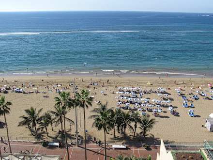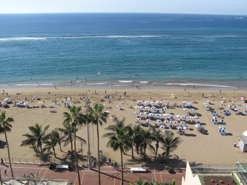 Blick vom Pool aus auf den Hotelstrand