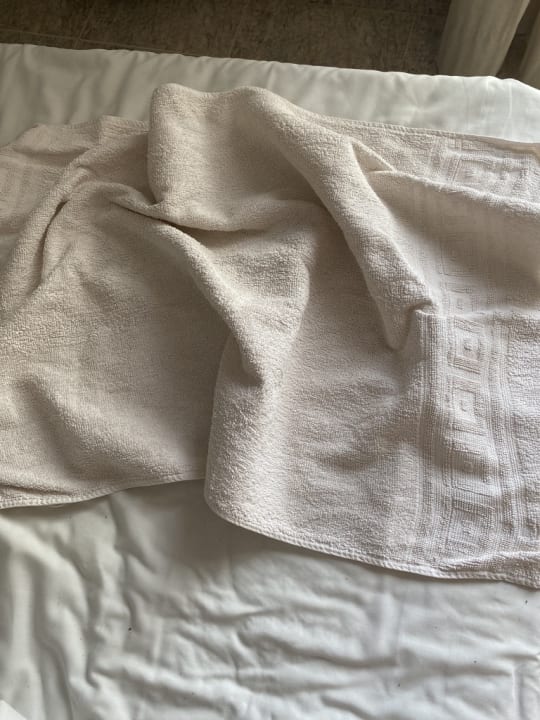 Vergilbtes Laken mit noch vergilbterem, harten Handtuch