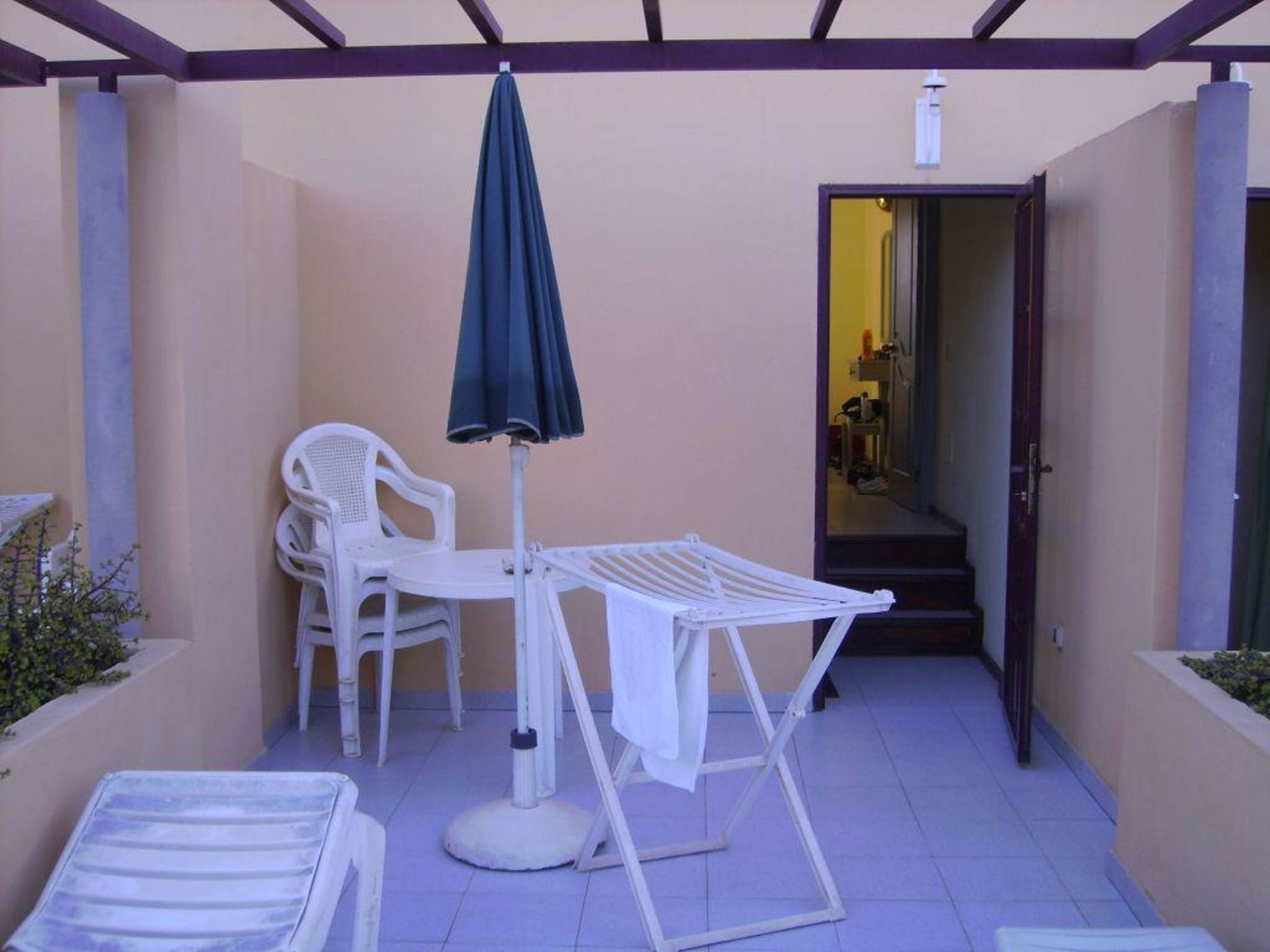Terrassesehr groß und tagsüber mit Sonne ( incl. 2 Liegen, 1 Tisch, 4 Stühle, 1 Wäscheständer)
