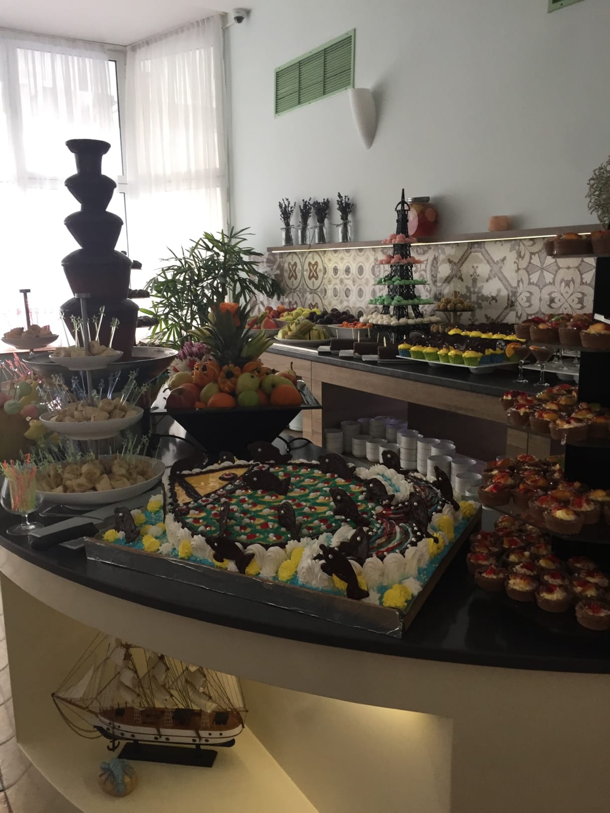 Dessertraum beim Themenabend, mit Schokobrunnen.
