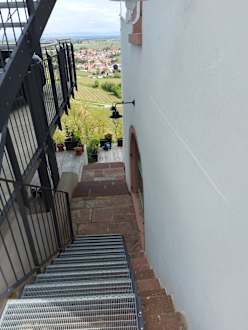 Treppe zur Weinlounge, mit tollem Ausblick.