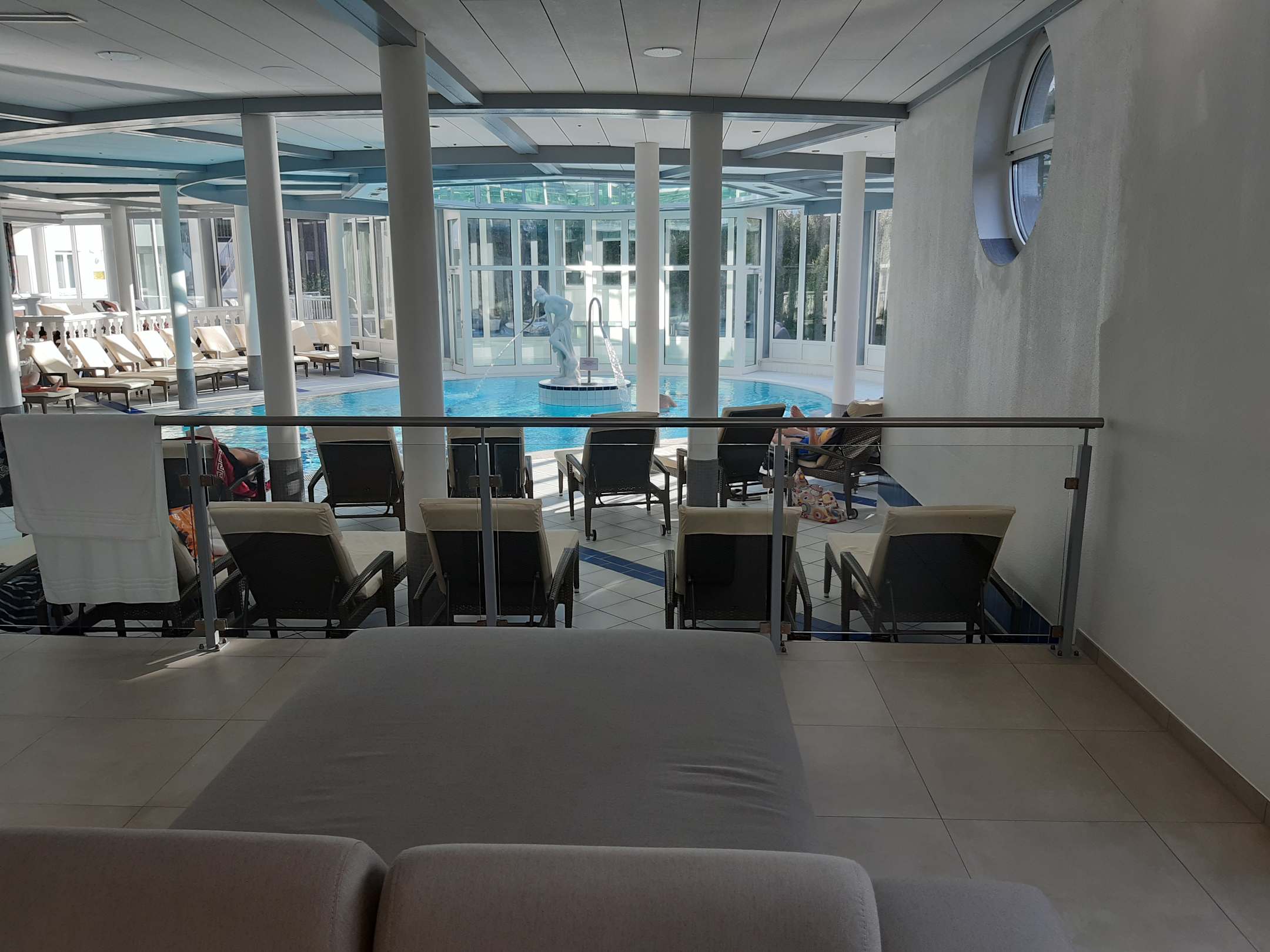 PoolGrosses Hallenbad mit ausreichend Liegen.