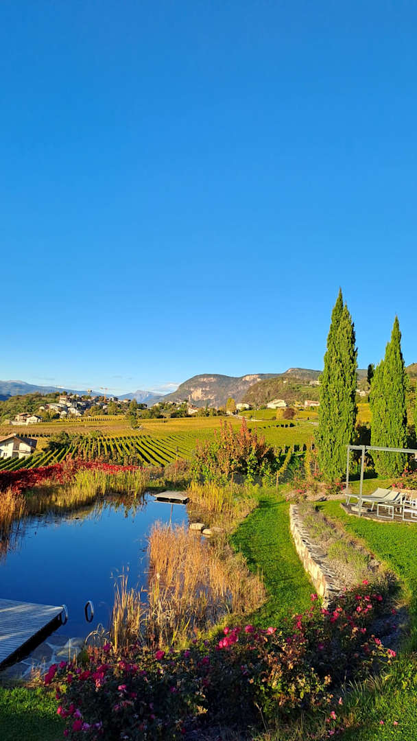 Goldener Herbst in Montan: Wenn sich unser Garten und die umliegenden Weinberge in leuchtende Farben kleiden. Genießen Sie die milde Herbstsonne an unserem Naturbadeteich und die Ruhe der Erntezeit.