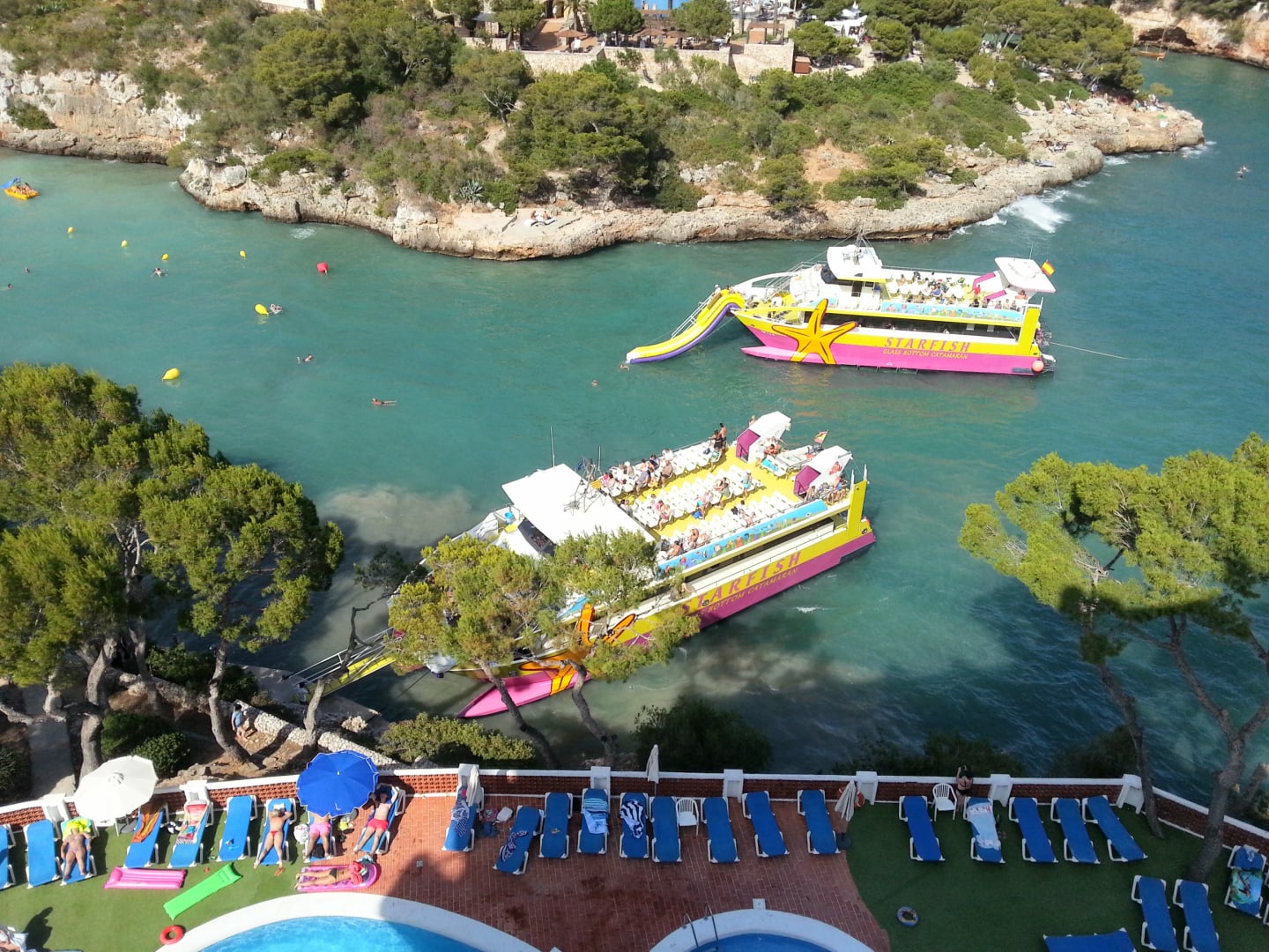 AusblickSchiffsanlegestelle für die Starfish Touristenboote gleich unterhalb des Poolbereiches. Die kommen öfter am Tag.