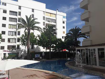Pool, das weiße Gebäude gehört nicht zum Hotel und versperrt den Blick zum Strand