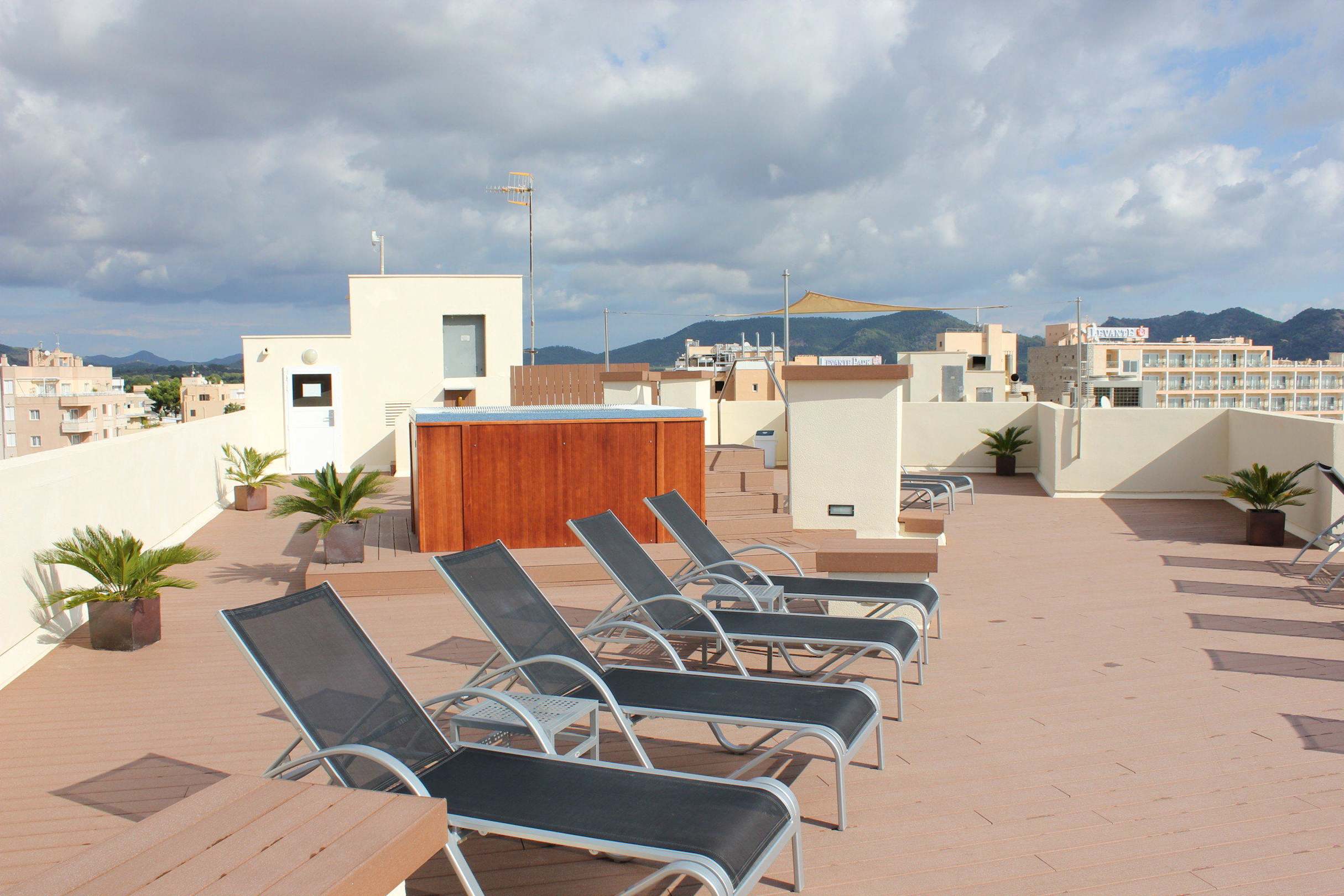 Dachterrasse mit Liegen und Whirlpool