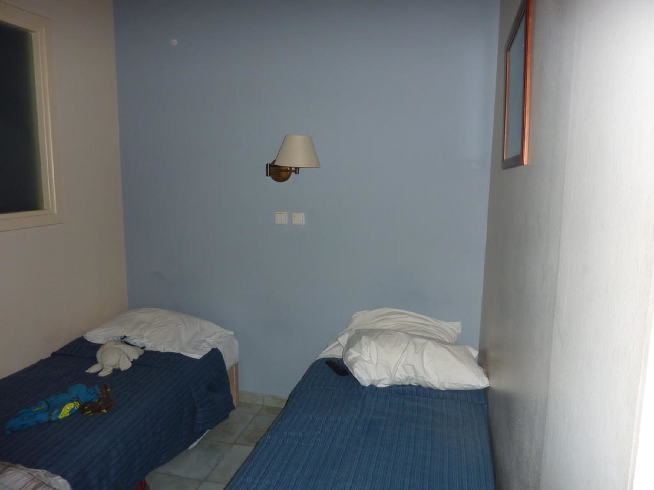 Durchgangszimmer ohne Fenster. Sitzen war nur auf den Betten möglich..Das sollte der Hauptraum des Familienzimmer sein. Daumen nach unten!