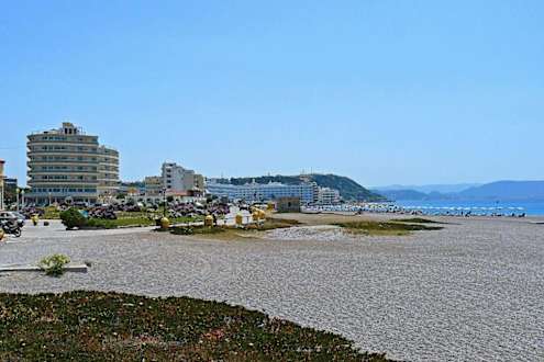 Aussicht auf Hotel Cactus und Weststrand von Rhodo-Stadt.