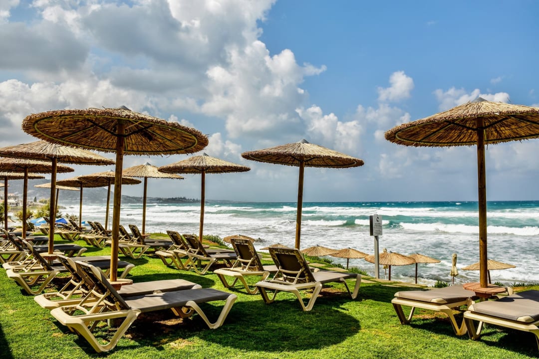 Fantastischer Blick auf der erhöhten Liegewiese über dem Strand.